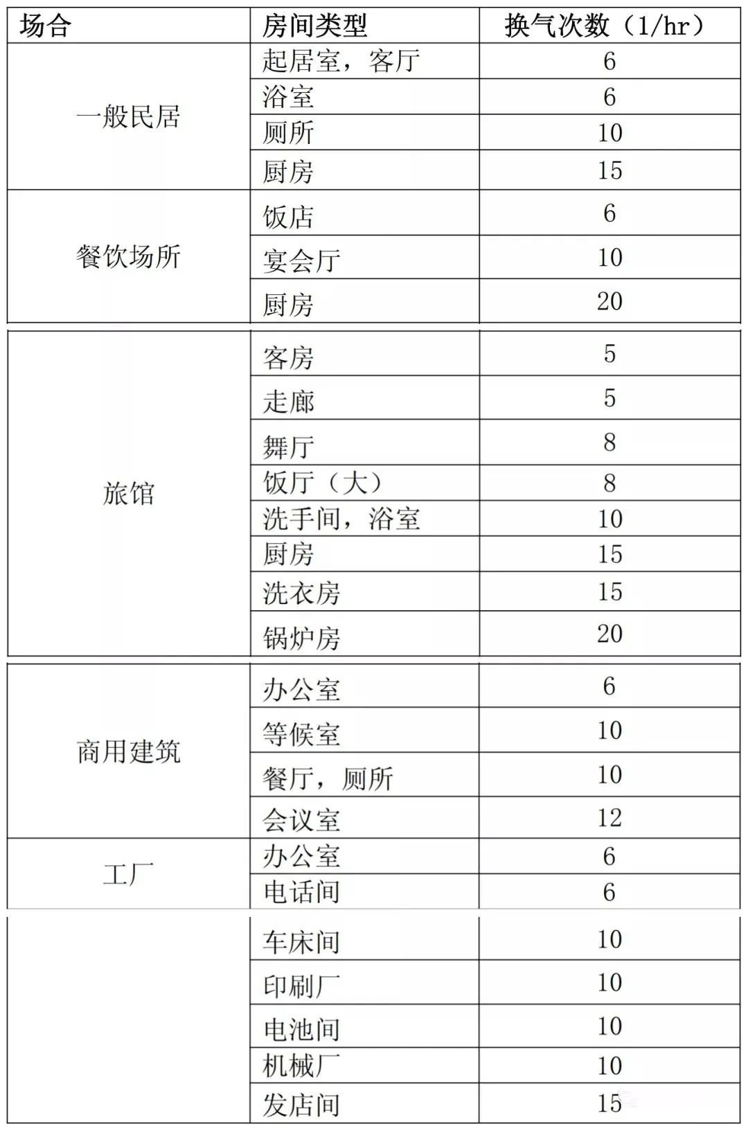 引入新風主要是為了改善空調房間內空氣質量,降低有害物質的含量和濃度, 確保在內的人員的舒適度和生理健康, 維持工藝要求。確定需要的新風量時,往往按照室內廢氣(尤其是 CO2)的產生量以及其他的室內條件。一般來說,應保證每人每小時 30m2的新風量。對于普通場合,可以根據每人占用面積來計算新風量:計算公式:必要風量(m3/h)=A*面積/人均占有面積上式中,A 表示人均新風量(m3/h)通常進行估算時可使用 20m3/h