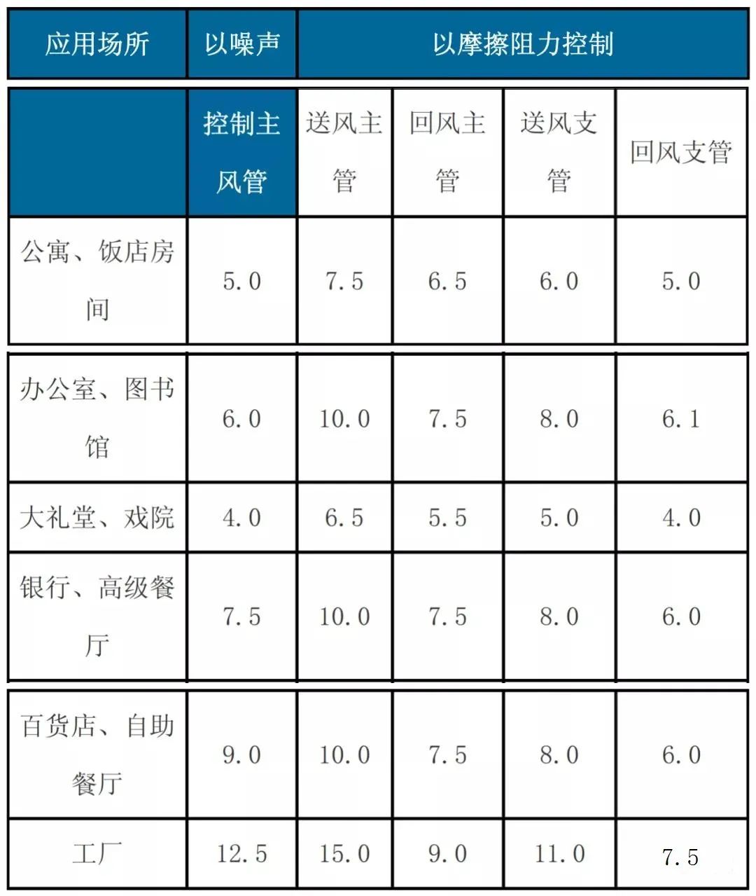 因回風管位于吸風部位,主要承受外部壓力,應注意減輕其風管負擔。對于風管系統,常采用送風管 0.08-0.15mmH2O/m,回風管0.06-0.1 mmH2O/m 作為基準。在進行風管機的風管道設計時, 注意在風管機的進、出風處加靜壓箱,以均衡風壓,減少噪音,并且使靜壓箱內的流速保證在3米每秒以下,其長度可根據實際情況來定。v 如彎頭、三通、變徑等較少的情況下每米損失 4pa 左右。