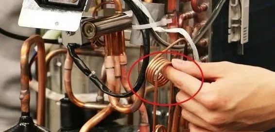 經(jīng)驗(yàn)總結(jié):維修人員在對(duì)系統(tǒng)進(jìn)行維修時(shí)要避免系統(tǒng)進(jìn)水,否則容易形成冰堵。在判斷是冰堵還是臟堵時(shí)可以觀察外機(jī)毛細(xì)管處,若結(jié)霜的位置是從毛細(xì)管進(jìn)口處開(kāi)始,則為臟堵,若是從毛細(xì)管出口處開(kāi)始則為冰堵。