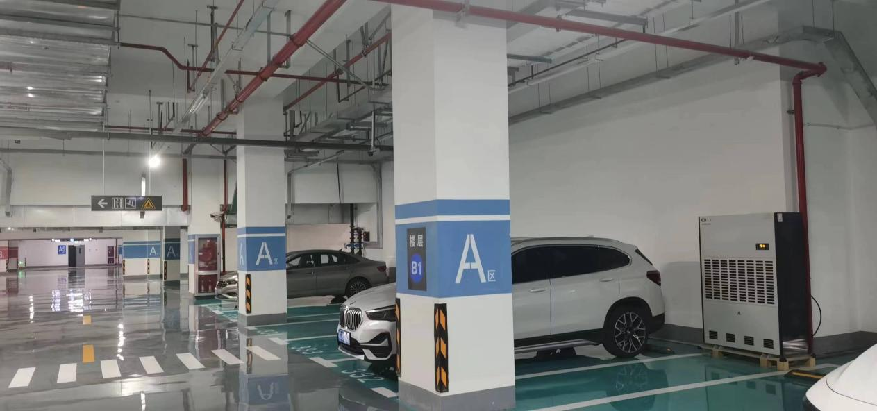 針對這一問題,非眾安裝了10臺20公斤除濕機(jī),通過快速有效地去除潮濕空氣,使地下車庫內(nèi)的空氣變得相對干爽舒適。這些除濕機(jī)能夠?qū)⑹覂?nèi)濕度始終控制在60%RH以下,從根本上解決了地下車庫的潮濕問題。