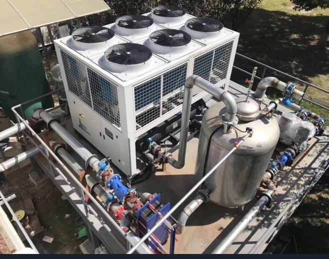 當(dāng)空氣冷卻式制冷機(jī)啟動(dòng)時(shí),制冷劑吸收蒸發(fā)器中被冷卻物體的熱量并蒸發(fā)。壓縮機(jī)不斷地從蒸發(fā)器中提取產(chǎn)生的氣體,并將其壓縮成高溫高壓蒸汽。然后,制冷劑蒸汽被送往冷凝器,在那里與空氣進(jìn)行熱交換。釋放熱量后,它凝結(jié)成液體。液體制冷劑在被膨脹閥減壓后,進(jìn)入蒸發(fā)器,在那里再次蒸發(fā),吸收冷卻物體的熱量。重復(fù)該熱交換過程,直到工業(yè)用水冷卻到所需溫度。
