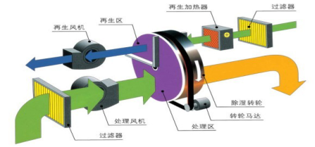 轉輪除濕機組工作原理: